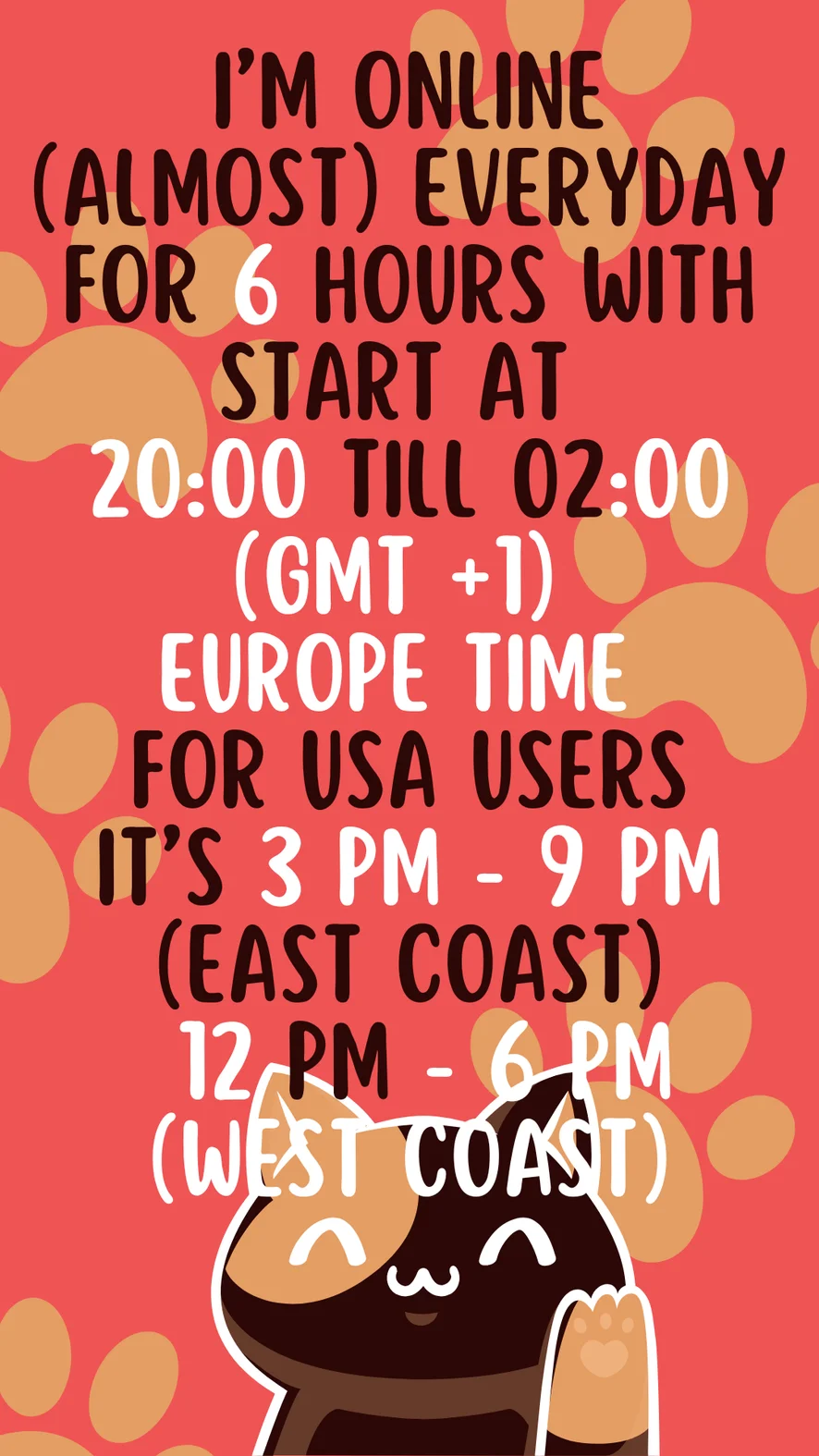 My schedule! ^^ Sometimes I can be a lil bit late, but still will be online!